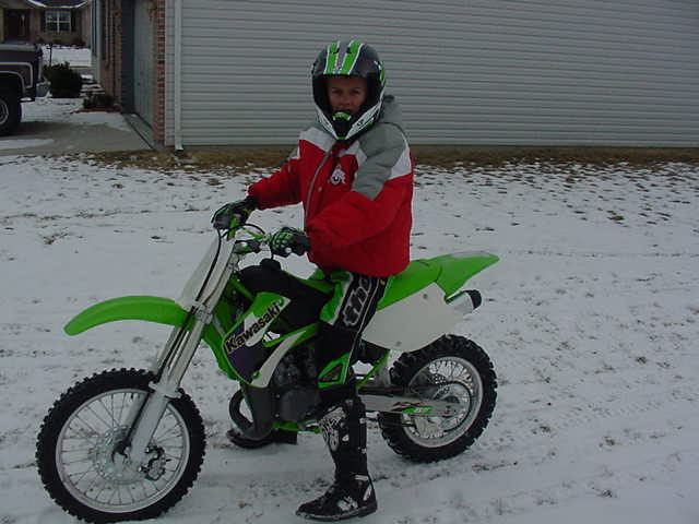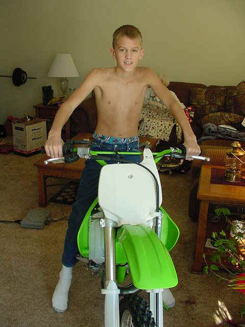 Me, Christmas morning 2000, on my KX-85 Kawasaki..........Thanks Santa............yu the man!!